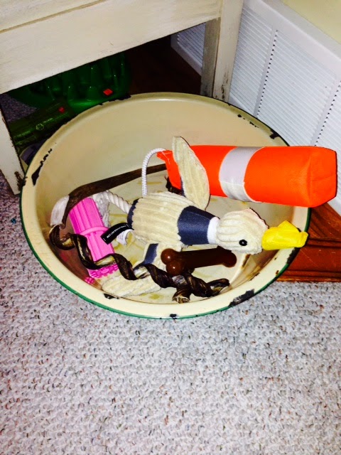 Shakes toys furiously in his mouth